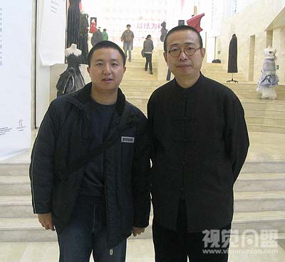 山東工藝美術學院院長 潘魯生教授(右)、視覺同盟主編廖翔(左)合影