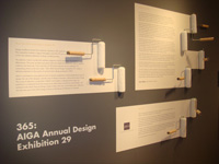 AIGA 是當(dāng)今世界上最受尊敬的專業(yè)設(shè)計組織,其設(shè)立的一系列競賽被公認為對優(yōu)秀設(shè)計最具權(quán)威性的宣言。“AIGA 365:年度最佳作品29”大展呈現(xiàn)了10個不同門類的精品。“AIGA 年度設(shè)計競賽” 的評委從超過4,700件設(shè)計中選出155件入圍的優(yōu)秀作品。而 “50本書/50張封面” 的評委則需要從收到的900件入選作品中挑出年度最佳作品。