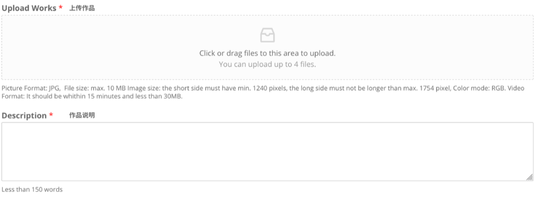 作品圖片要求分辨率需符合標(biāo)準(zhǔn)格式,作品概念說明(Description)不超過150字。