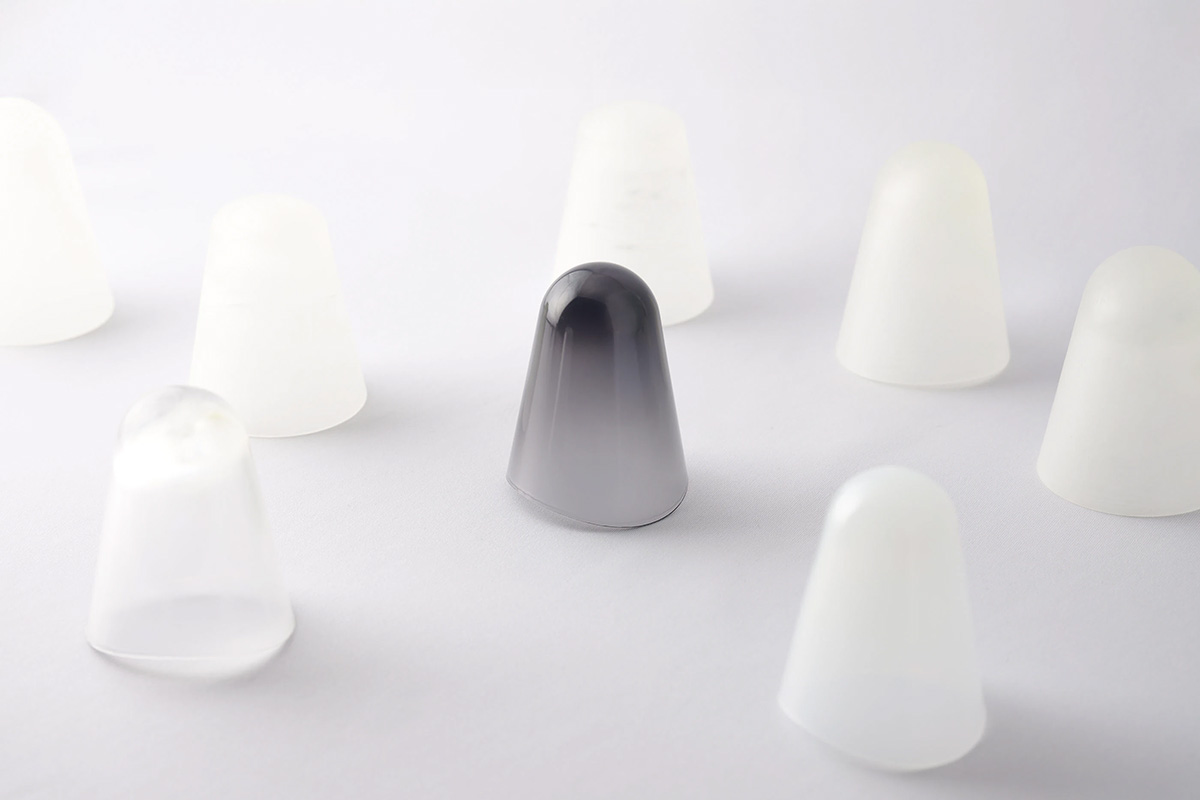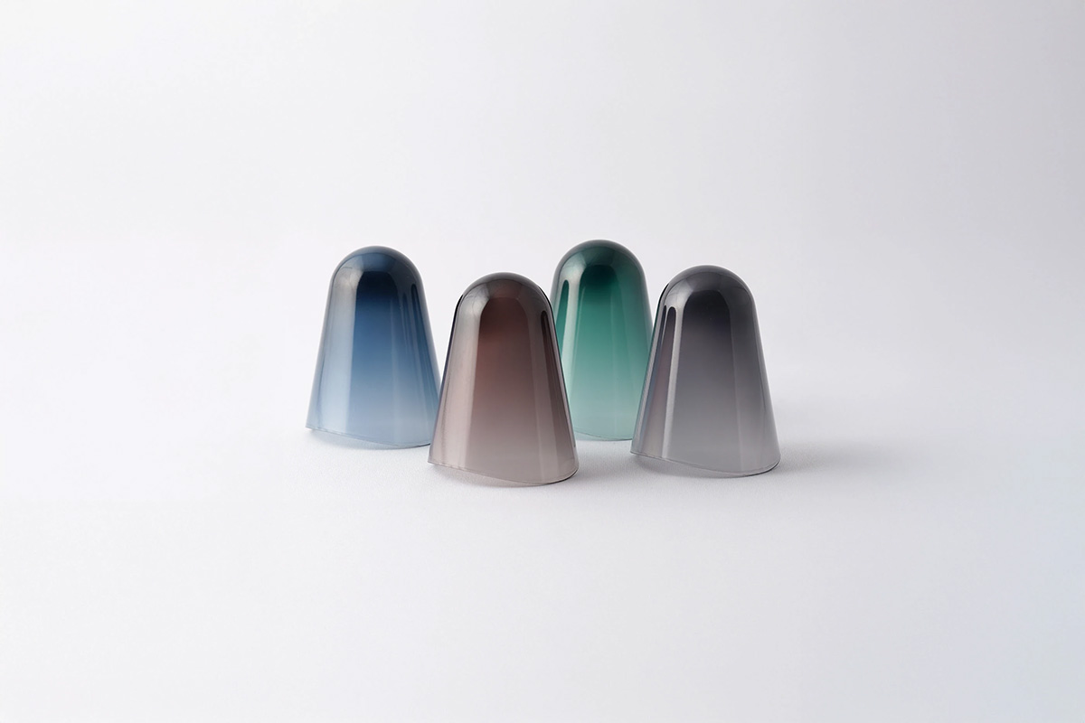 香薰機(jī)采用生物基PET材質(zhì),其色彩設(shè)計(jì)使其在放置時(shí)仿佛漂浮在空中。它的厚度逐漸變化,即使是單一顏色也能呈現(xiàn)出美麗的漸變效果:從較薄處的近乎透明,到較厚處顏色逐漸加深。為了營造朦朧的視覺效果,還添加了磨砂添加劑,使顏色略帶朦朧感。