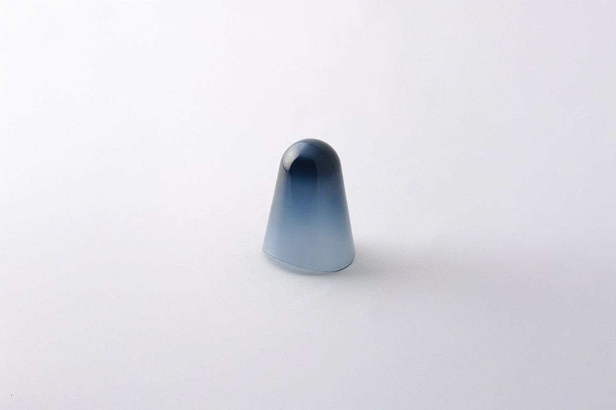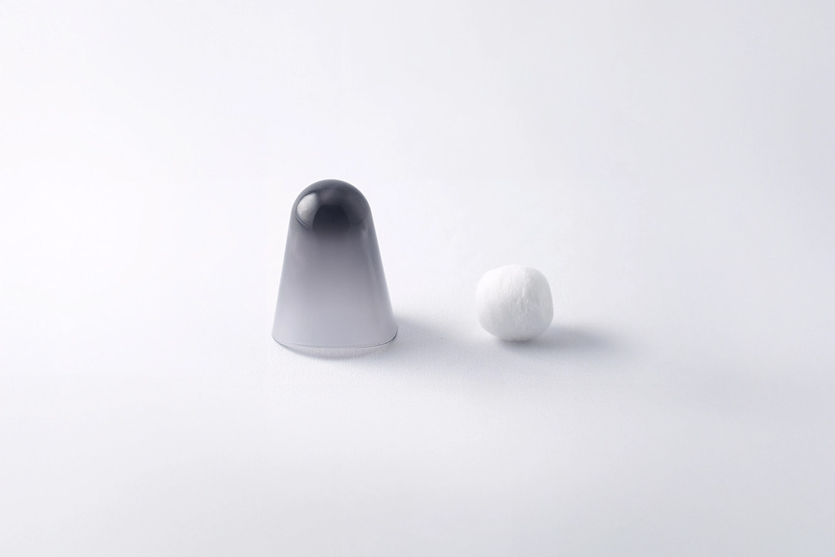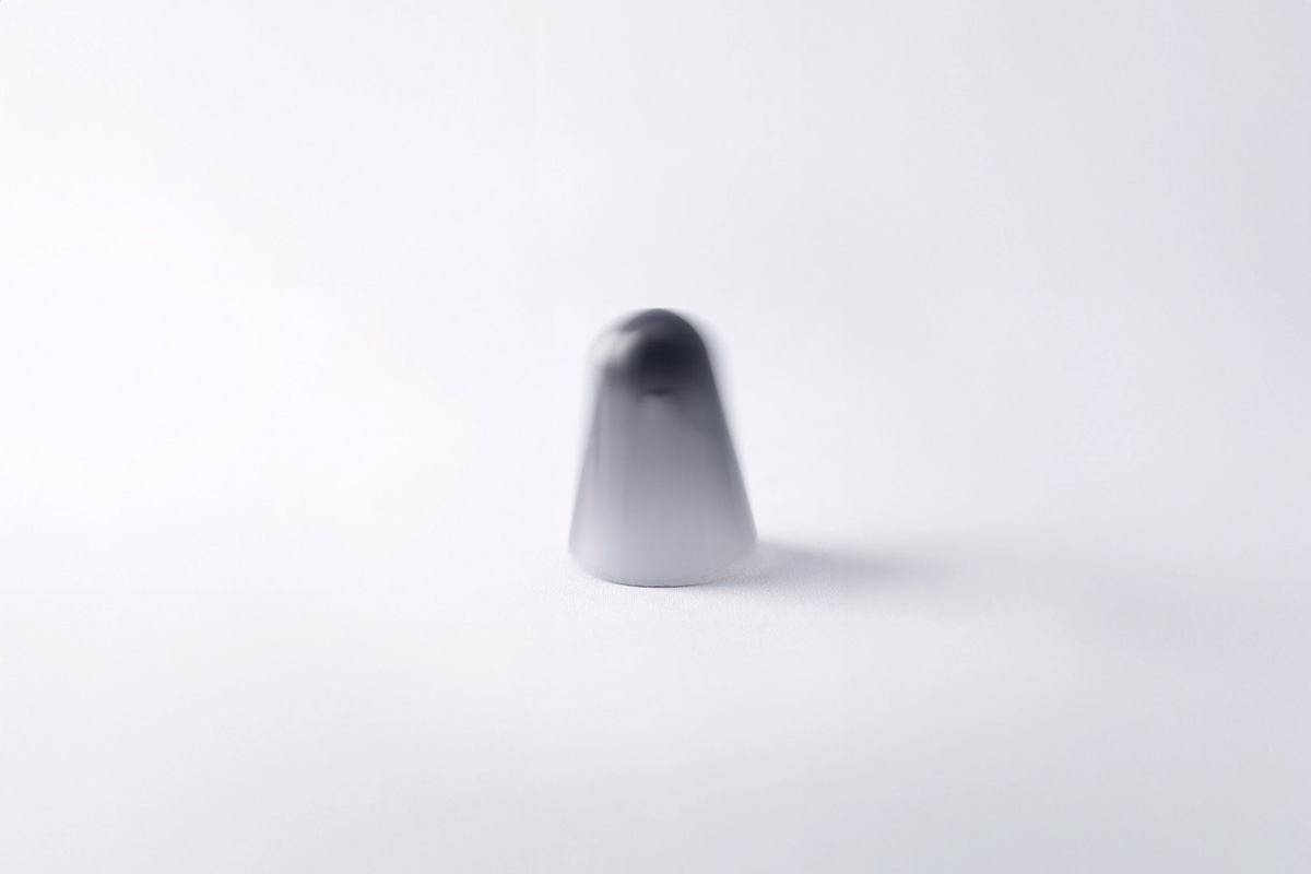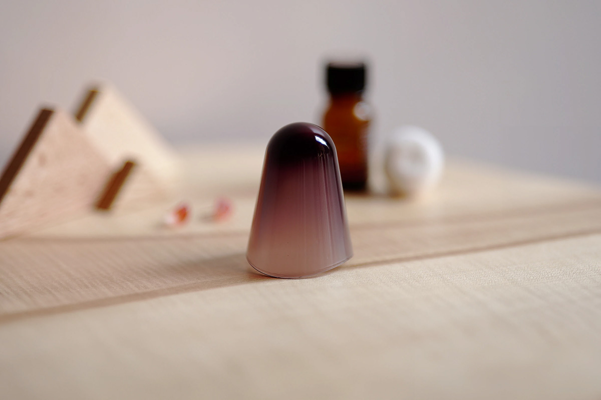 頂部厚重,底部呈弧形切割,使其重心高、慣性矩大,如同節(jié)拍器一般,便于搖晃。其內(nèi)部可容納棉芯,只需裝入香薰精油并輕輕搖晃,香氣便會緩緩彌漫開來。