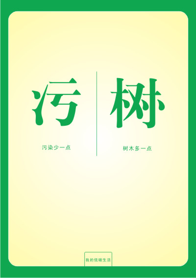 簡(jiǎn)介: 通過(guò)文字的巧妙變化反襯出主題“污染少一點(diǎn),樹木多一點(diǎn)”,這里的“點(diǎn)”體現(xiàn)在字體筆畫上的“點(diǎn)”。