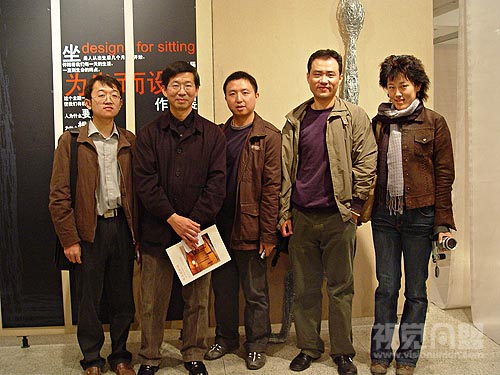 中央美術(shù)學院設(shè)計學院院長王敏教授(左2)和視覺同盟運營總監(jiān)張海新(右2)、主編廖翔(右3)、 副主編樊鵬(左1)、通訊員劉墨揚(右1)合影