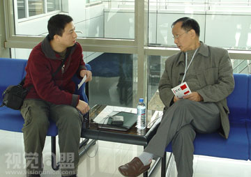 尹定邦教授(右)接受視覺(jué)同盟主編廖翔(左)采訪