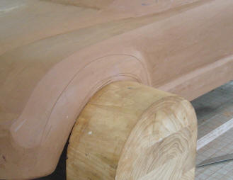 借用輪模和圓規(guī)準(zhǔn)確劃出輪罩的形,并進(jìn)行刮削調(diào)整。