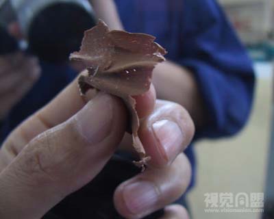 用刮片刮平刮光表面時(shí),要控制好方向、速度、力度、距離,有時(shí)刮的很薄,這片刮下的泥片似紙薄,且厚薄均勻。