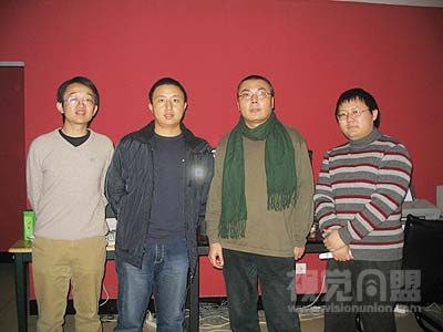 圖:合影-北京電影學院美術(shù)系影視特技教研室主任劉曉清(右2)、視覺同盟主編廖翔(左2)、視覺同盟副主編樊鵬(左1)、編輯謝罡(右1)