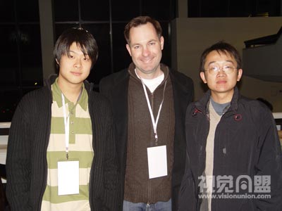 合影:ONE SHOW青年創(chuàng)意營評(píng)委Dave Holloway(中)、視覺同盟副主編樊鵬(右)、清華美院劉可(左)