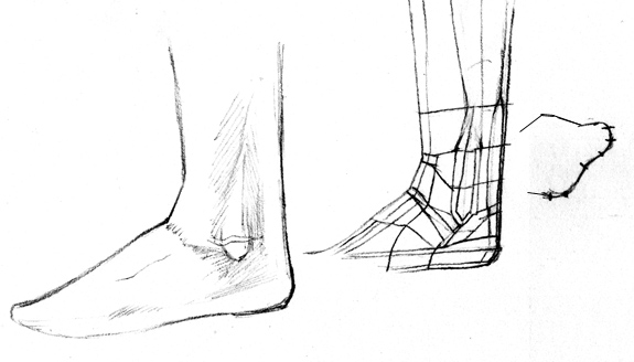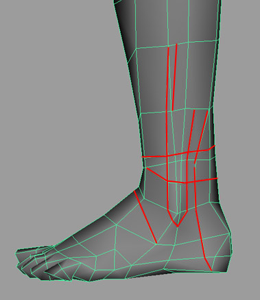 我先勾畫大致輪廓,然后我就畫出最基本的草圖,注意腳踝部分的細(xì)節(jié)和布線走向,這將影響以后的肌肉走向甚至動(dòng)畫制作。