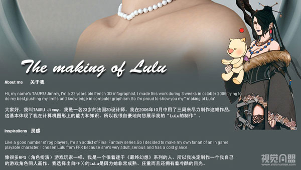 大家好,我叫TAURU Jimmy,是一名23歲的法國3D設(shè)計師。我在2006年10月中用了三周來盡力制作這幅作品,這基本筆體現(xiàn)了我在計算機圖形上的能力和知識。