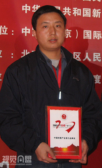 視覺同盟主編廖翔代表視覺同盟網(wǎng)站領(lǐng)取“2007中國(guó)創(chuàng)意產(chǎn)業(yè)潛力品牌獎(jiǎng)”
