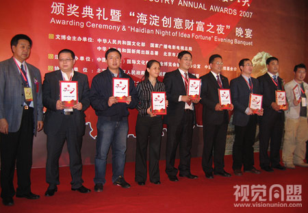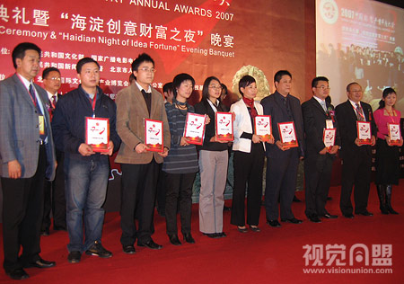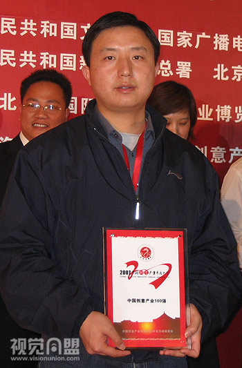 視覺同盟主編廖翔代表視覺同盟網(wǎng)站領(lǐng)取“2007中國(guó)創(chuàng)意產(chǎn)業(yè)100強(qiáng)”獎(jiǎng)