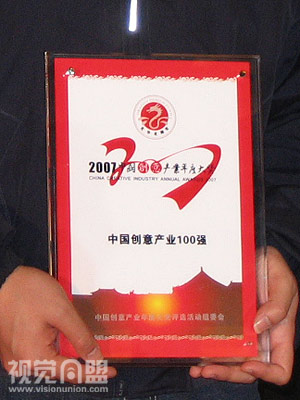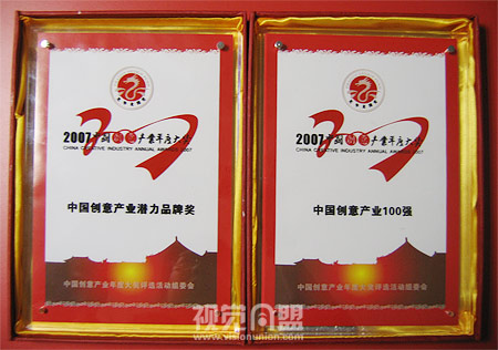 視覺同盟網(wǎng)站榮獲“2007中國(guó)創(chuàng)意產(chǎn)業(yè)潛力品牌獎(jiǎng)”和“2007中國(guó)創(chuàng)意產(chǎn)業(yè)100強(qiáng)”兩項(xiàng)大獎(jiǎng)