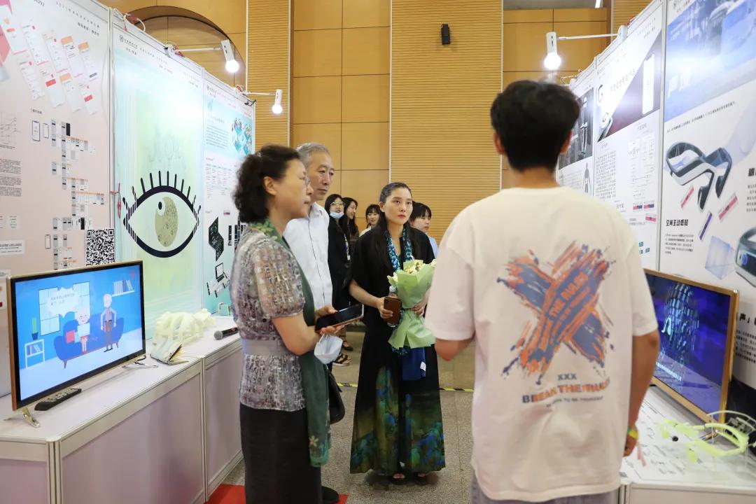 參觀環(huán)節(jié),嘉賓在工業(yè)設(shè)計系老師和學生們的陪同下認真欣賞了每一位畢業(yè)生的設(shè)計作品,對學生作品中體現(xiàn)出來的創(chuàng)新意識和科技之美表示認可與肯定,對畢業(yè)生們的精巧構(gòu)思和專業(yè)水準表示贊揚。