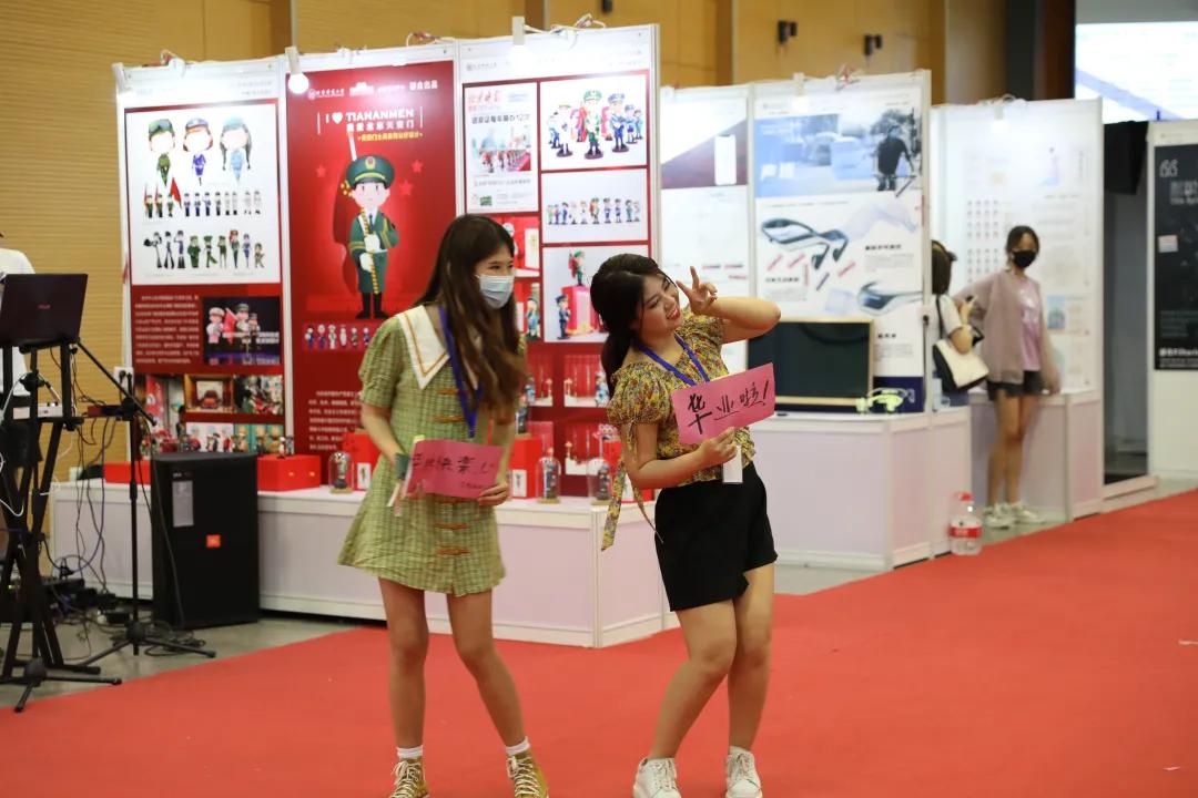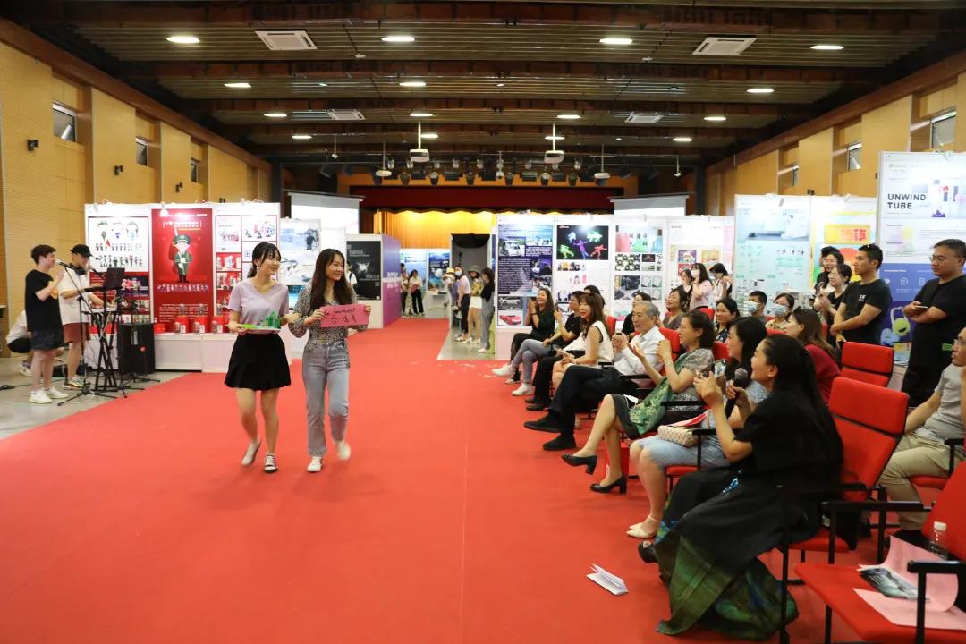 本次畢業(yè)設(shè)計展新增了走秀環(huán)節(jié)。走秀中,同學們帶著自己的作品,手舉宣言,在自己作曲填詞并演唱的主題歌中自信地走過紅毯,向嘉賓老師展現(xiàn)出青春風采;顒釉跓崃业恼坡曋袌A滿結(jié)束。